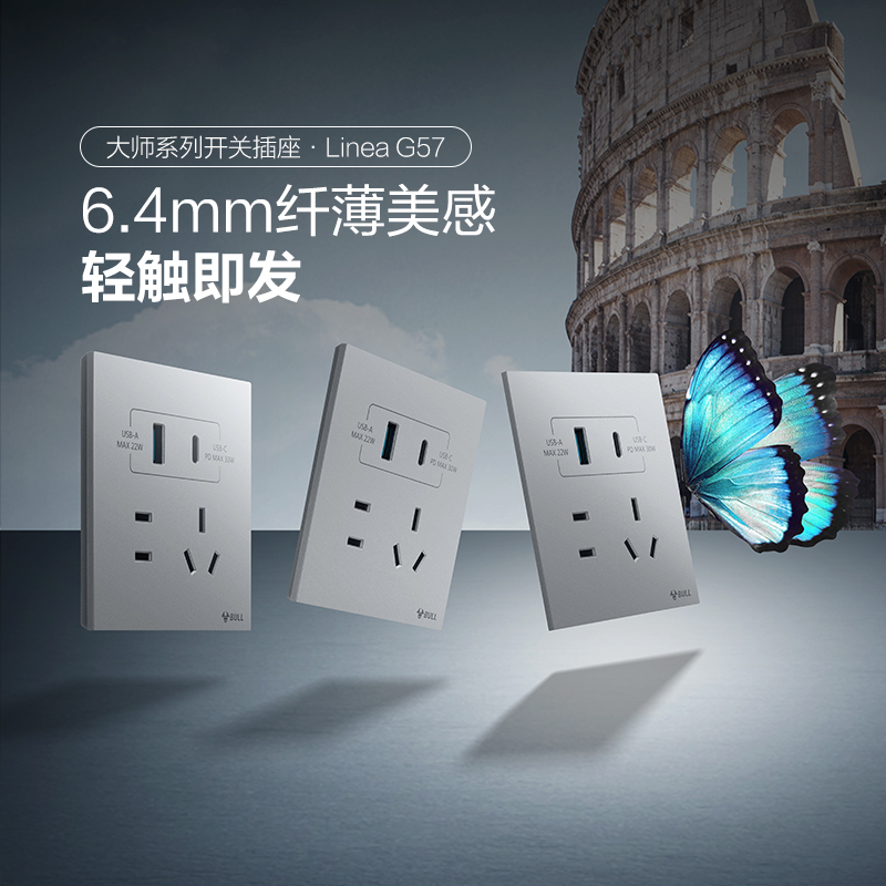 二三极+二位USB插座(A+C/远山灰)