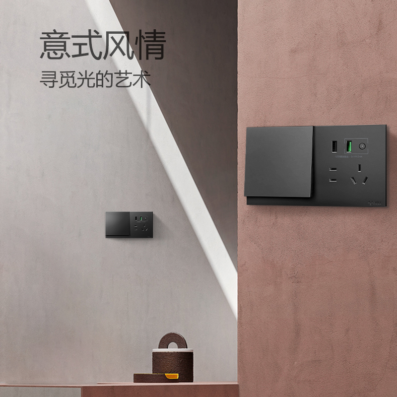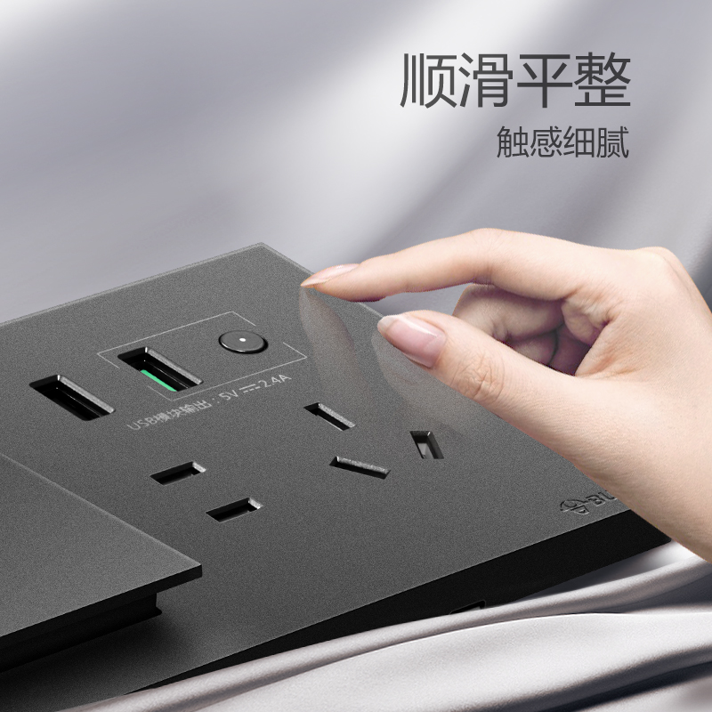 一位双控+二三极+防过充+USB插座(黑色) 一位双控+二三极+防过充+USB插座(黑色)